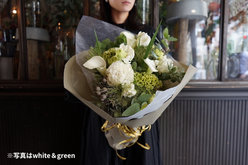 舞台や結婚式など広い会場でお贈りになる場合は、"ロングブーケ"という丈の長いタイプもございます